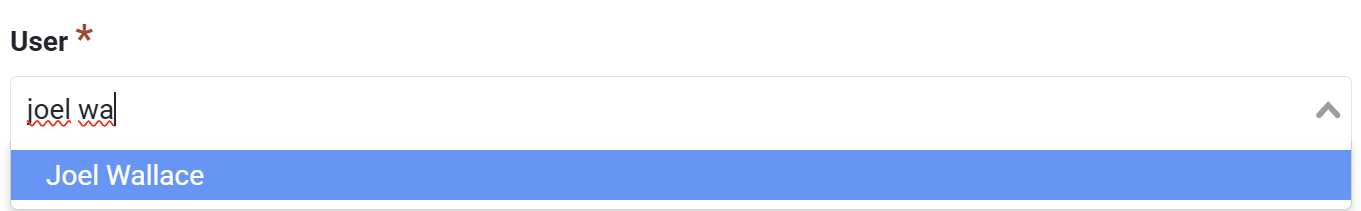 - In the User field, begin typing the name of another user, then select their name from the drop-down list.