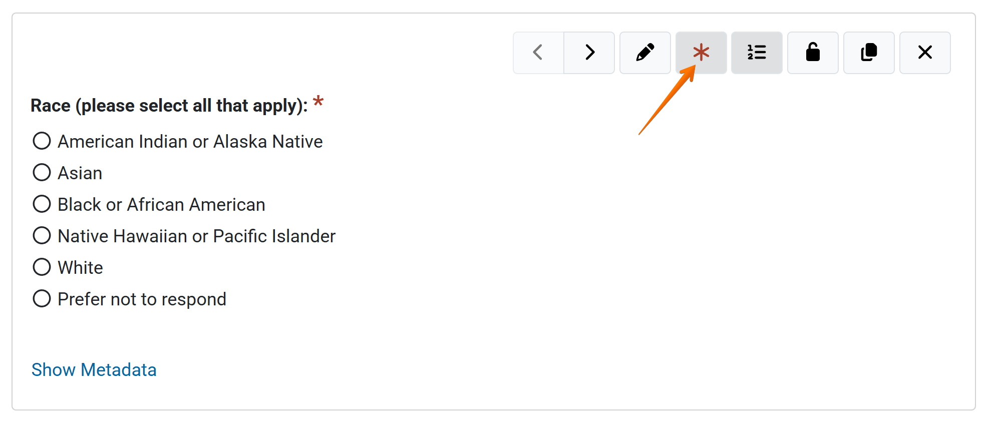 Click the asterisk to mark a question as required.