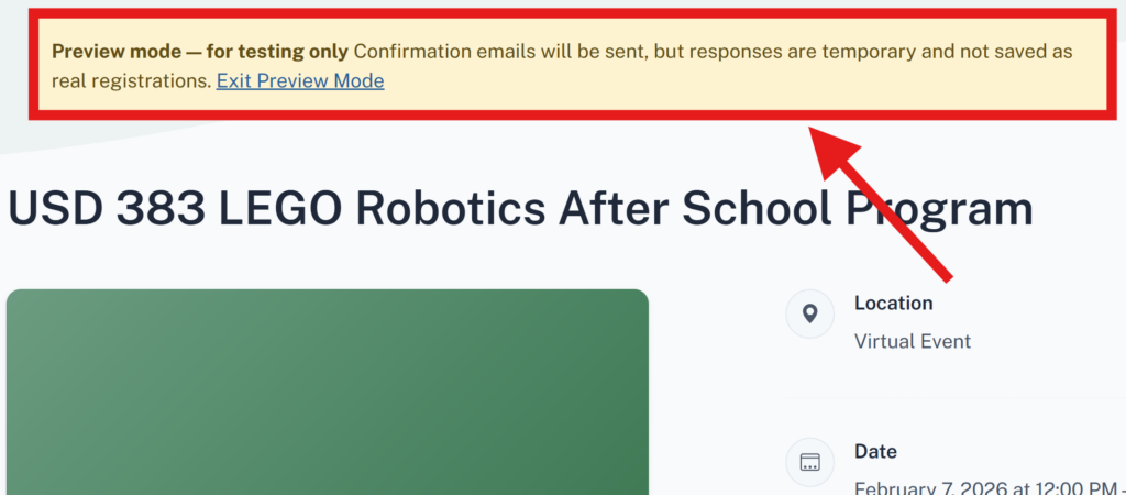Now, events can be tested before publishing. Registrations submitted during the preview are for testing purposes only and are not included in reports/capacity counts or saved long-term.